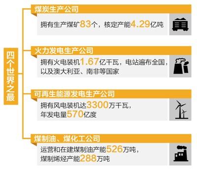 資產規模超過1.8萬億元,擁有33萬名員工、8家科研院所、6家科技企業,形成煤炭、常規能源發電、新能源、交通運輸、煤化工、產業科技、節能環保、產業金融等8大業務板塊……重組后的國家能源集團可謂能源“巨無霸”,按照2016年年底的口徑計算,它同時擁有了四個世界之最——