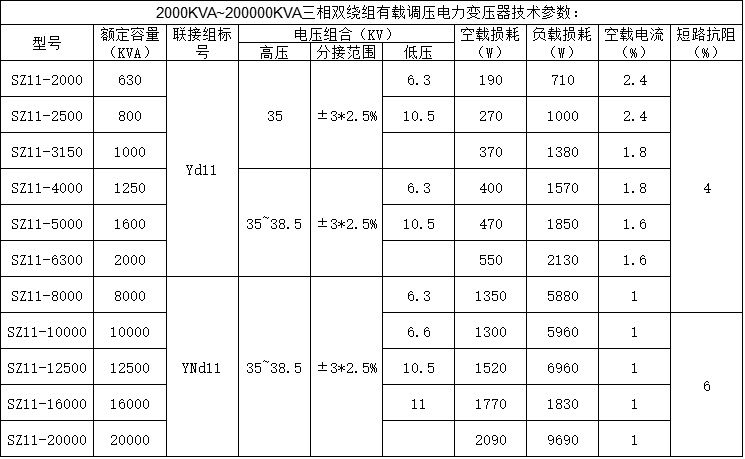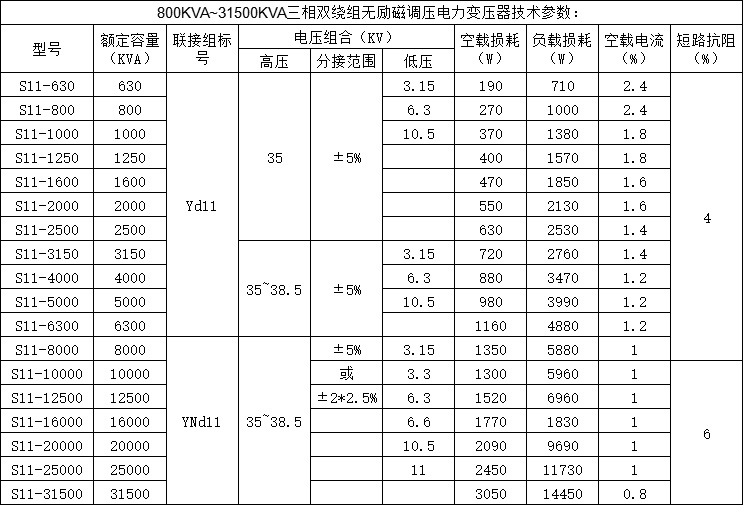 注1:對于低壓電壓為10.5kV和11kV的變壓器,可提供連接組標號為Dyn11的產品。
